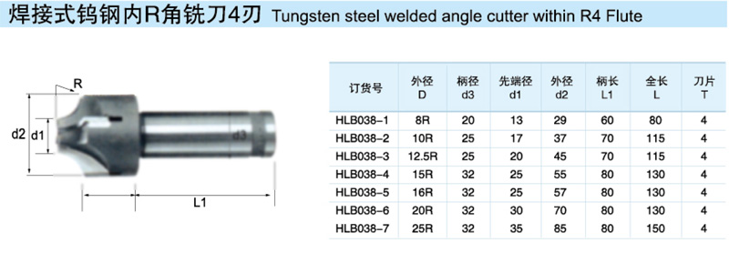 焊接式鎢鋼內R角銑刀4刃