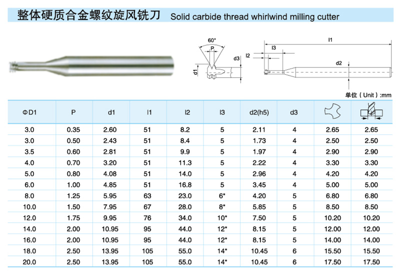 整體硬質合金螺紋旋風銑刀